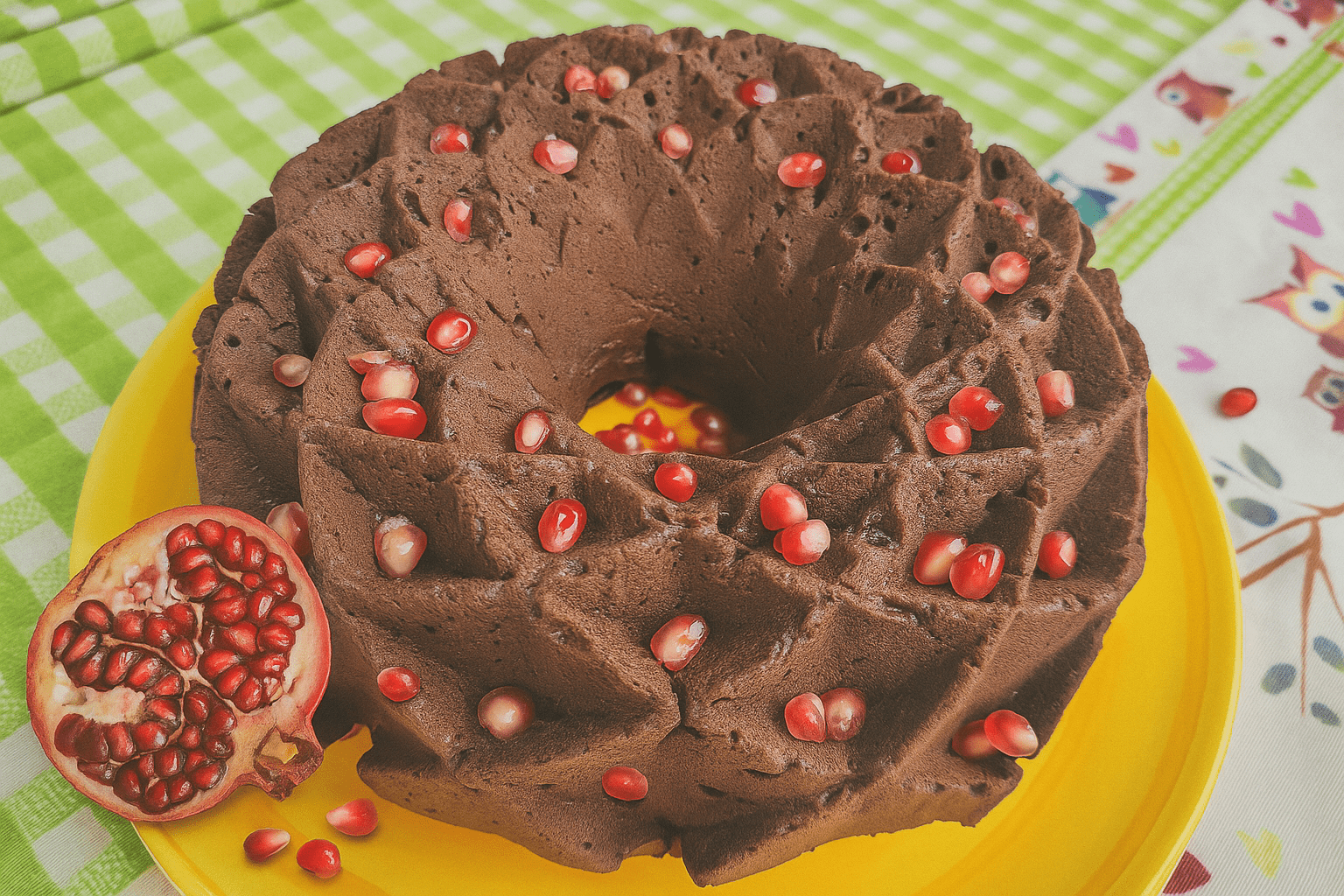 Con questa torta vegan di cacao e melograno ho voluto rendere visibile questa energia. Il cacao porta profondità, radice e introspezione mentre il melograno illumina di colore, succo e vivacità.