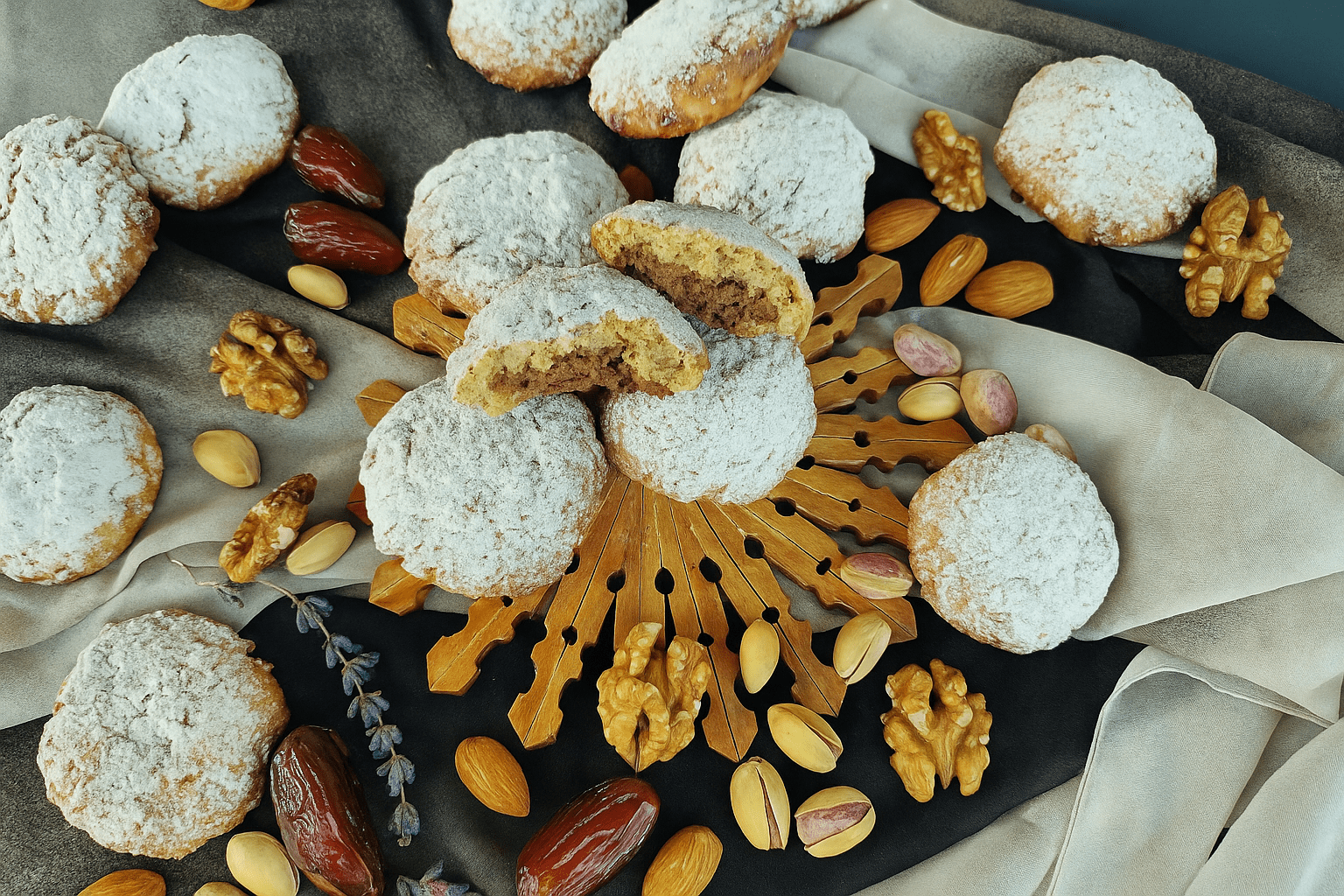 Ecco i miei Ma’amoul: corposi, avvolgenti, profumati di zucchero a velo e spezie, e con un ripieno che è un viaggio tra mondi diversi uniti in una sola dolcezza.